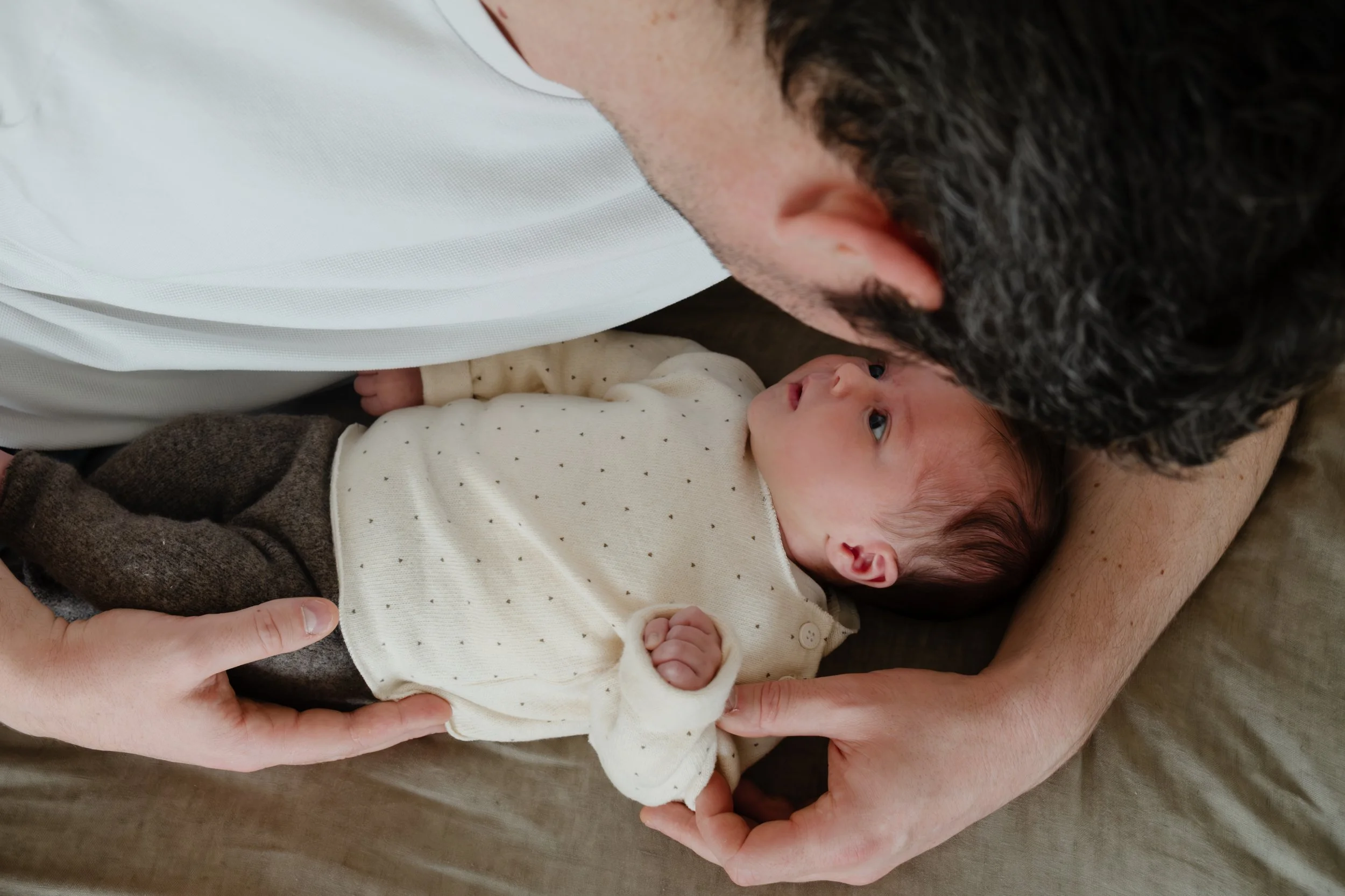 Wat mag je verwachten?Een hele eer, jullie mini-baby mogen komen fotograferen! Ik kom naar jullie thuis, zodat alles voor de jongste spruit zoveel mogelijk z’n gewone gangetje kan gaan. Ik maak een aantal mooie NATUURLIJKE portretjes, en volg verder met plezier jullie nieuwe gezinsleven door het oog van m’n camera. Knuffelend met mama en papa, slapend in z’n eigen bedje, ondergedompeld in een badje, tijdens het verpamperen, terwijl broer of zus hem bijna platdrukt, tijdens papje of borstvoeding,…